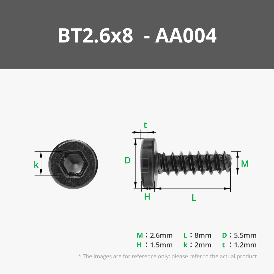 BT2.6x8 SHCS Self Tapping Screw (20PCS) - AA004Size