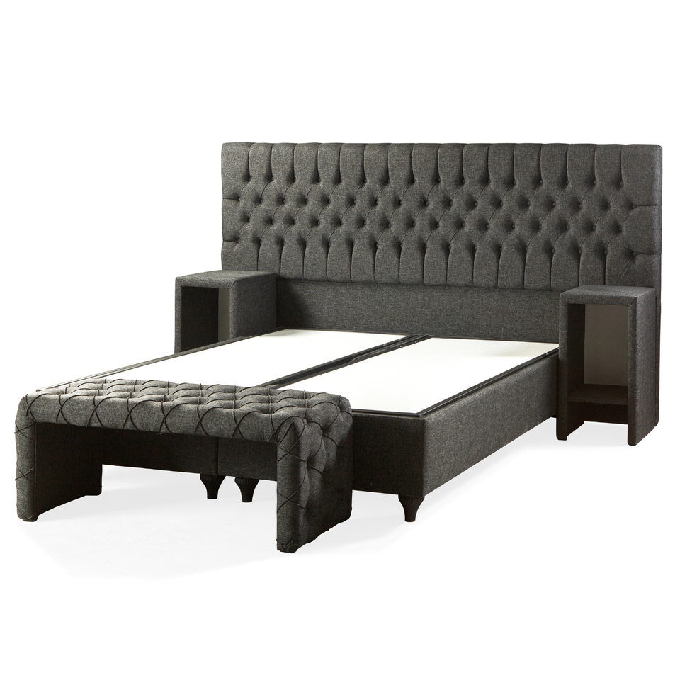 BURSA Luxury Bedroom Set Storage Bed Base Headboard 2 Nightstands Velvet Linen Leather Upholstery Sizes 140-200 cm Wood