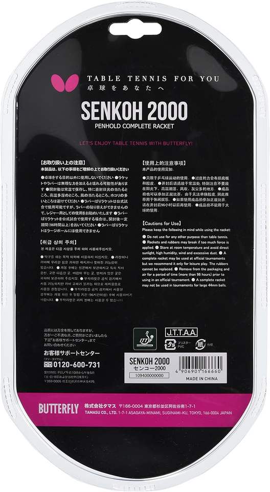For Senko 2000 Penhold Grip Table Tennis Rubber Blade 10940 Pre-Assembled Single Ply