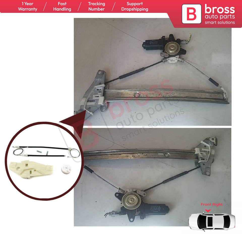 BWR5409 Window Regulator Repair Set Front Right Door for Corolla E10 AE100 E100 1991-1999 3/4/5 Door 6981002051 Bross Auto Parts