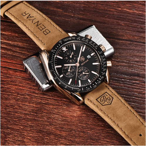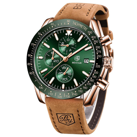 BY-5140 BENYAR Luxury Quartz Chronograph Wrist Watch for Men 44mm Diameter Small Dial Fashionable Casual Bracelet Six-Pin Design