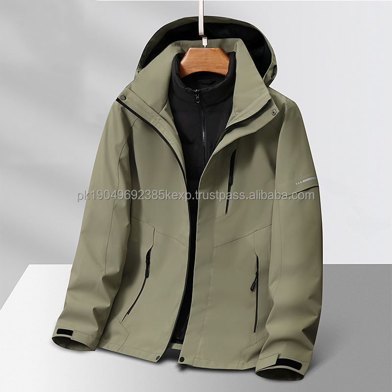 BY66001-2 Custom Plus Size Winter Duck Down Wind Breaker 3 in1 Liner Detachable Waterproof Windbreaker Zip Up Jacket
