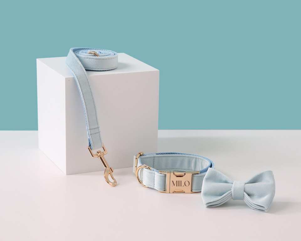 Baby Blue Personalized Bow, Collar And Lead, Large Small Puppy, Thick Veet Collar,Wedding Collar, Dog Lover Gift UK