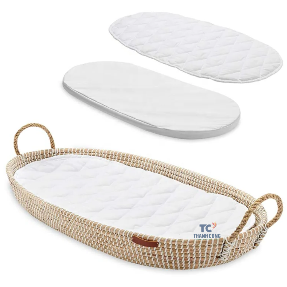Baby Changing Basket Seagrass With Cotton Pad Thick Foam Handmade Seagrass Basket From Vietnam
