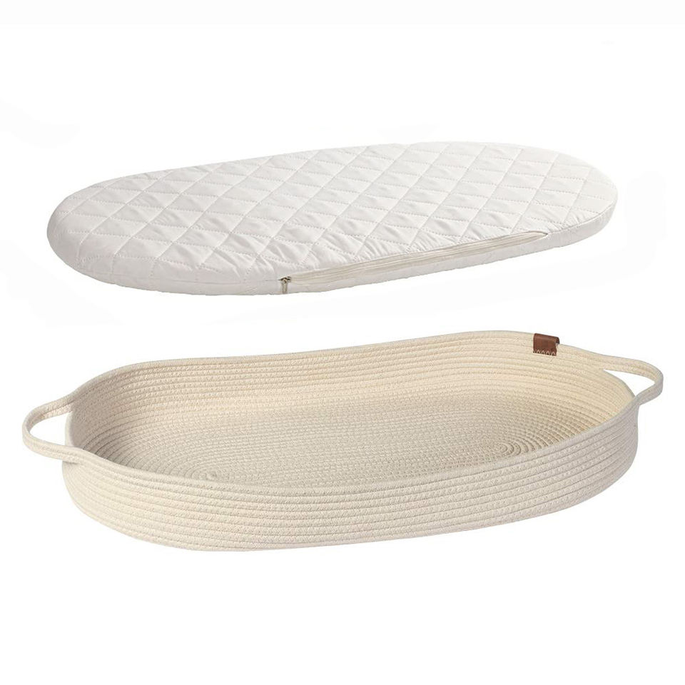 Baby Changing Moses Basket W/ 3 Set Diaper Caddy Organizer Waterproof Mattress Organic Cotton Rope with Thick Removable Foam Pad