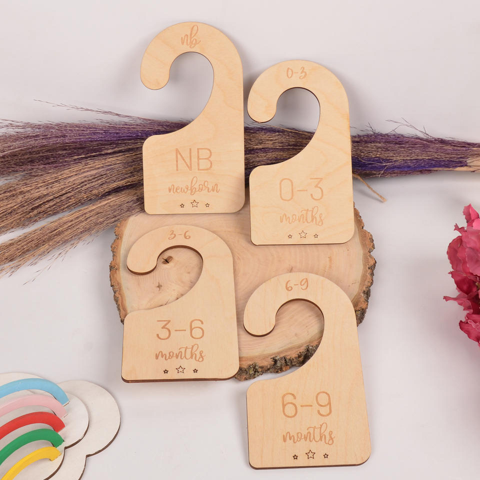 Newborn to 24 Months Baby Closet Dividers Wooden Clothes Organizers with Hangers for Bedroom or Nursery 7-Piece Set