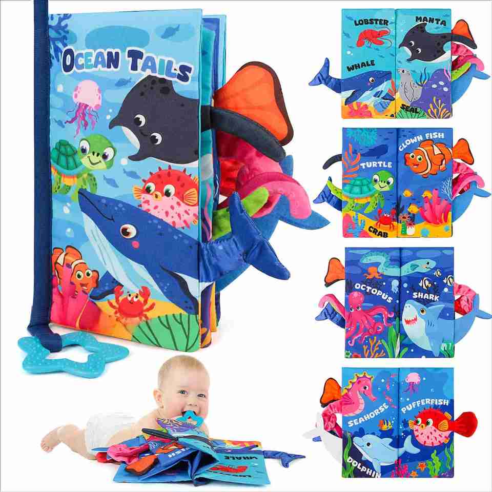 Baby Cloth Book Toys Ocean Shark Crinkle Book with Teether Baby Shower Gifts for Boys & Girls
