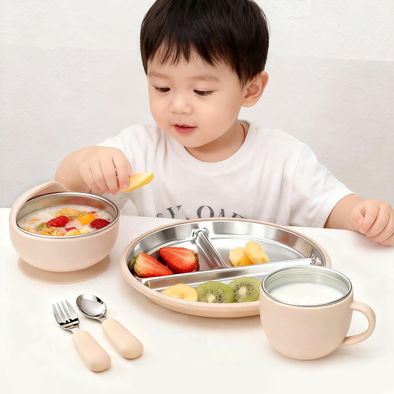 Baby Feeding Dinnerware Plates Kids Sus304 Non-Toxic BPA Free Unbreakable Non-Slip Divided Design Microwave Dishwasher