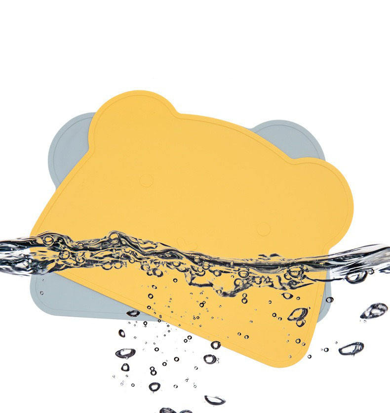 Baby Food Grade Silicone Dinnerware Set Bear Mat Bib Bowl Divided Plate Spoon Fork BPA Free Eco-Friendly