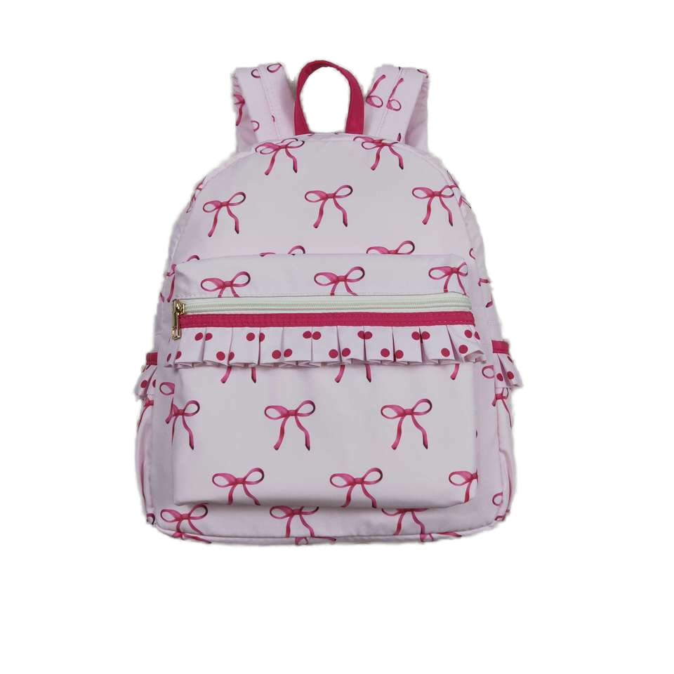 Baby Girl Fashion Microfiber Synthetic Leather Backpack for Bow Print Zipper Closure Wholesale Schoolbag for Little Kids Back