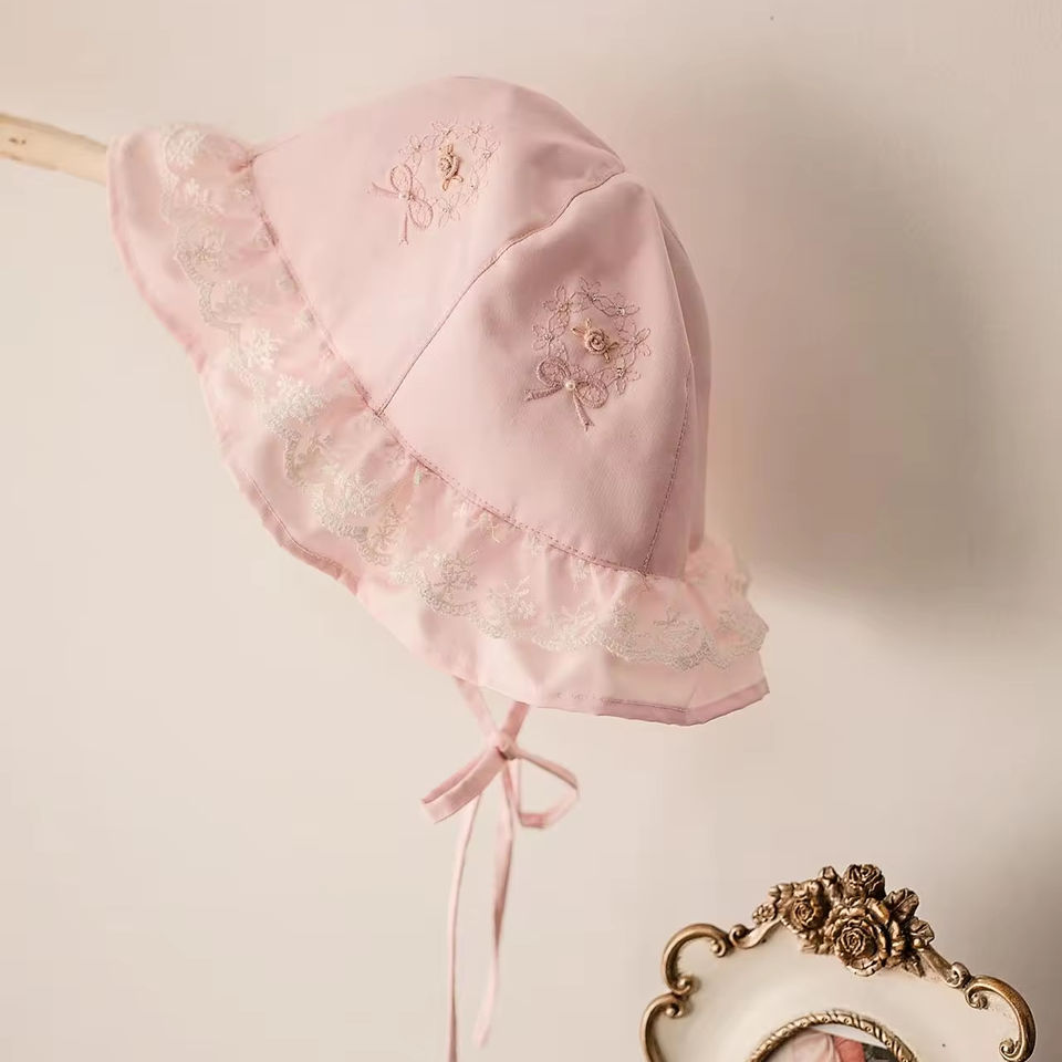 Baby Girl Pink Custom Color Connect Lace Fancy Occasion Style Bonnet Factory Direct Supplier Cotton Cute Bucket Summer Ruby Hat