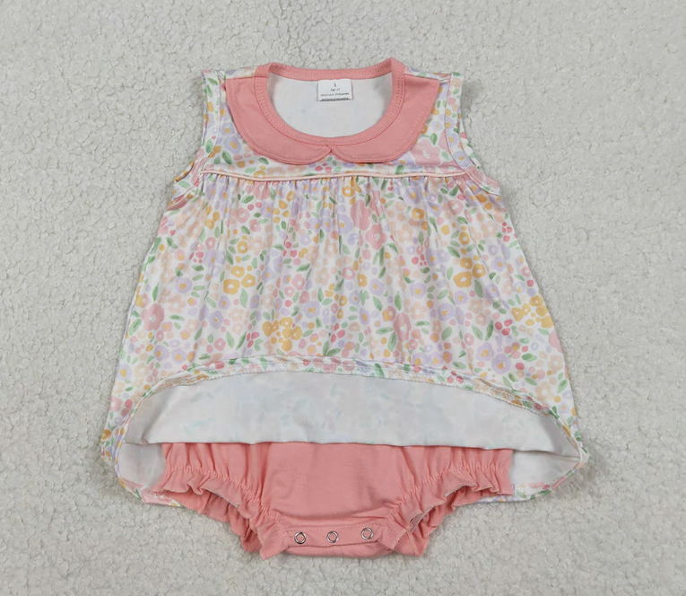 Baby Girls SR3628 Colorful Flowers Print Baby Girls Summer Skirted Romper Clothing Sets