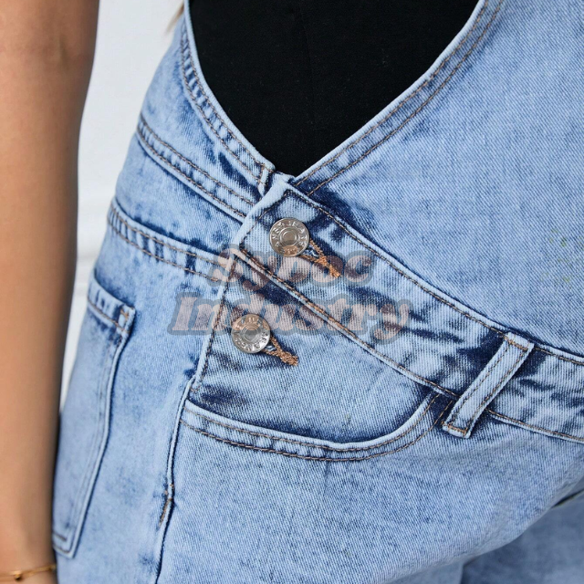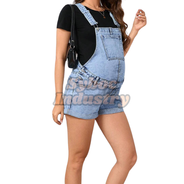 Baby Overall For Women Stylish Light Wash Denim Bib Style Short Overall Summer Jumpsuit For Casual Wear