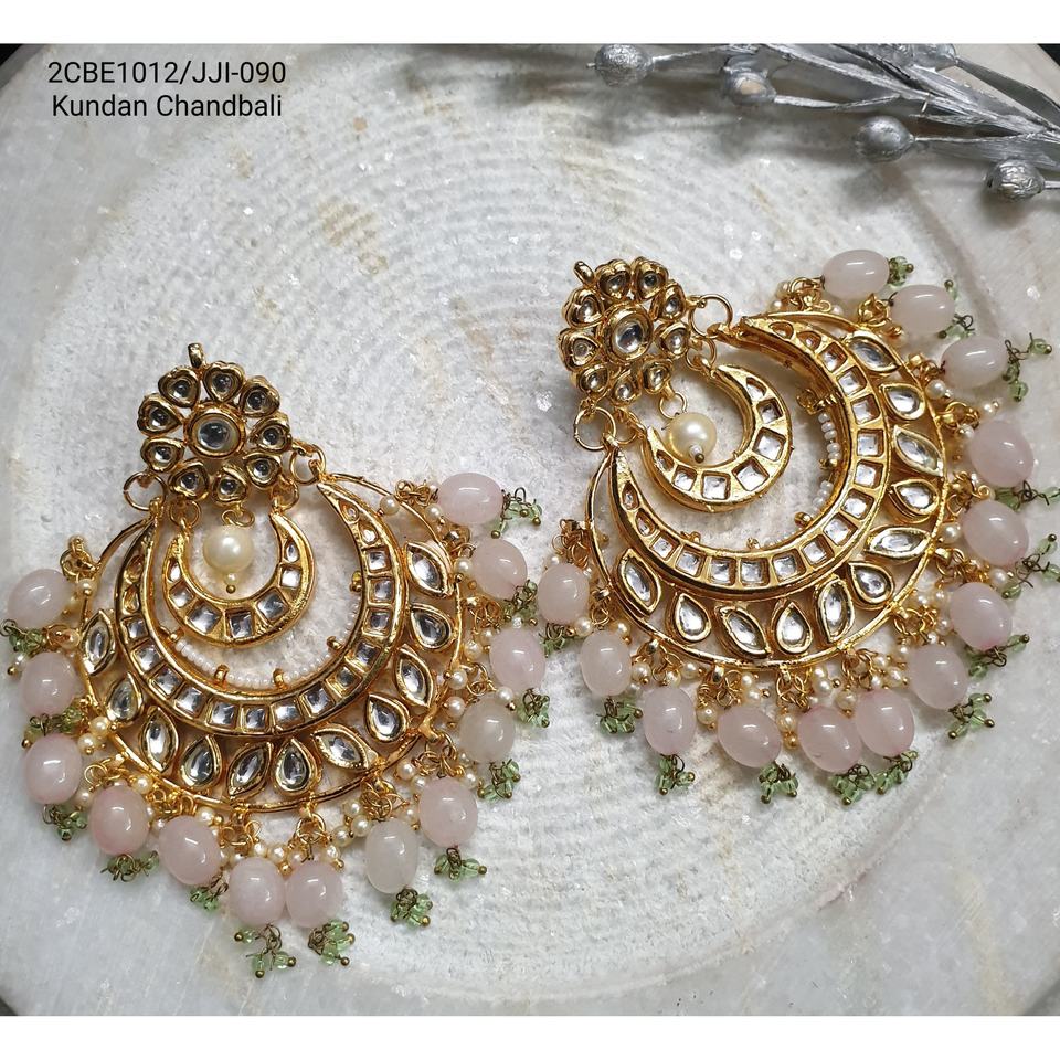 Baby Pink Beading Kundan Chandbali Fashion Chandelier Earrings