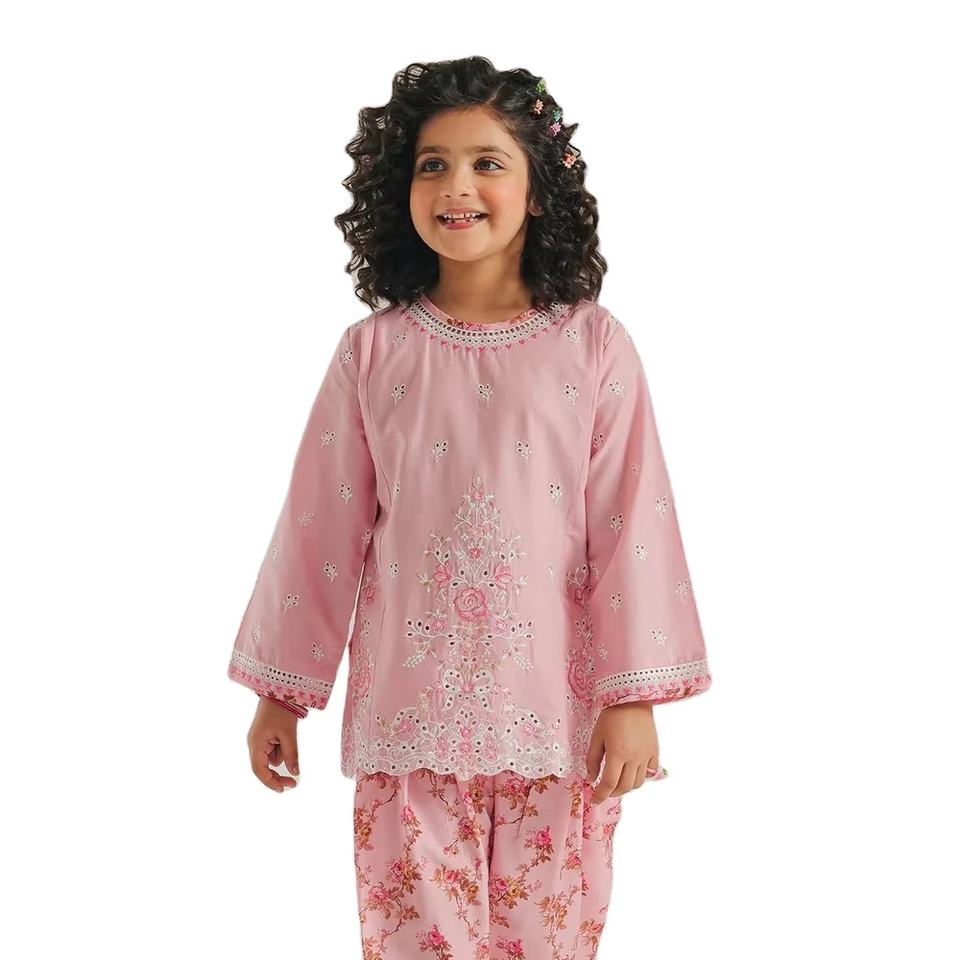 Baby Pink Embroidered Eastern Tunic for Kids Girls Stylish Tunic Dress Fancy Wear for Girls