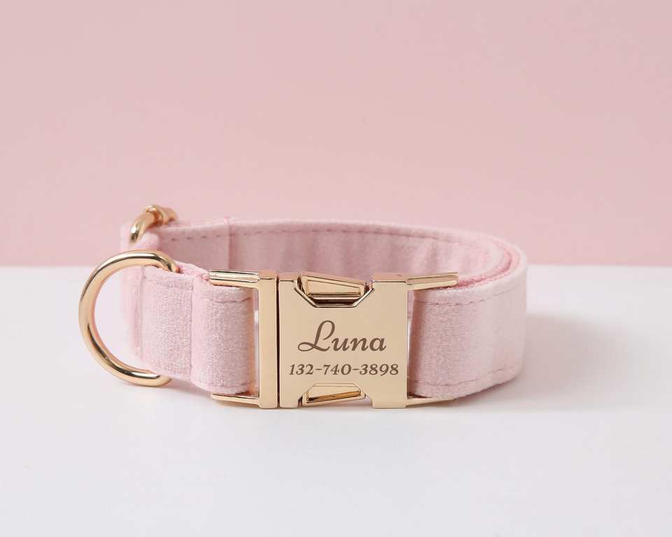 Baby Pink Veet And Lead With Bow Tie,Personalise Wedding Dog Outfit, Collar Leash Set For Puppies,Gold Engraved Name Buckle