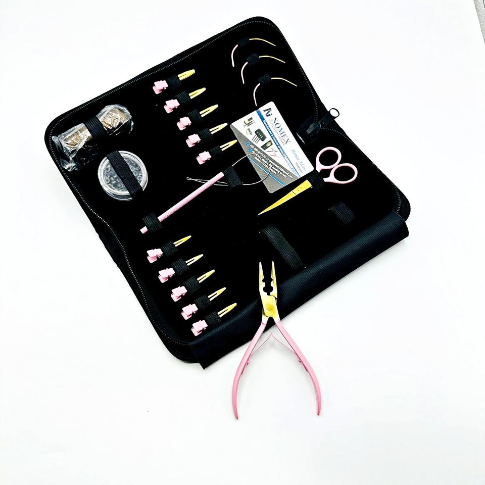 Baby Pink with Gold Hair Extension Tools Kit Included 2 Holes Plier Thread Cutting Scissor Bead Box Hair Sectioning Clips Custom