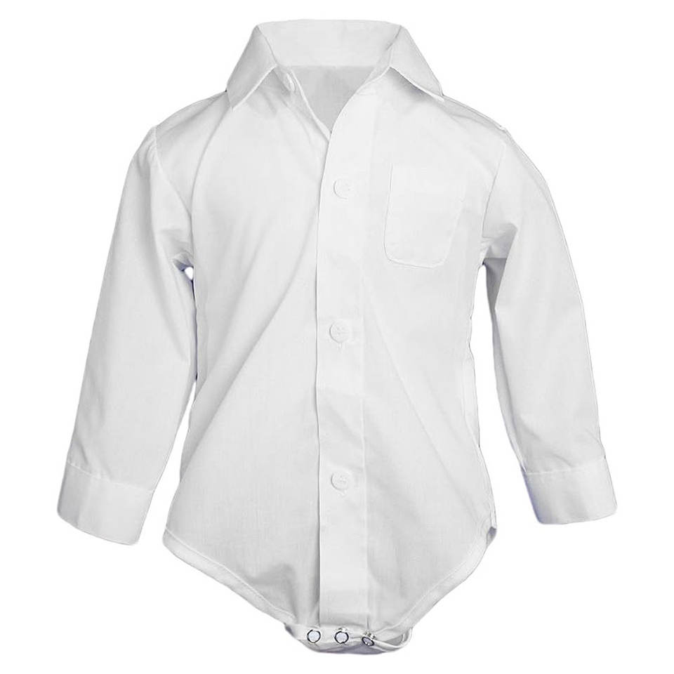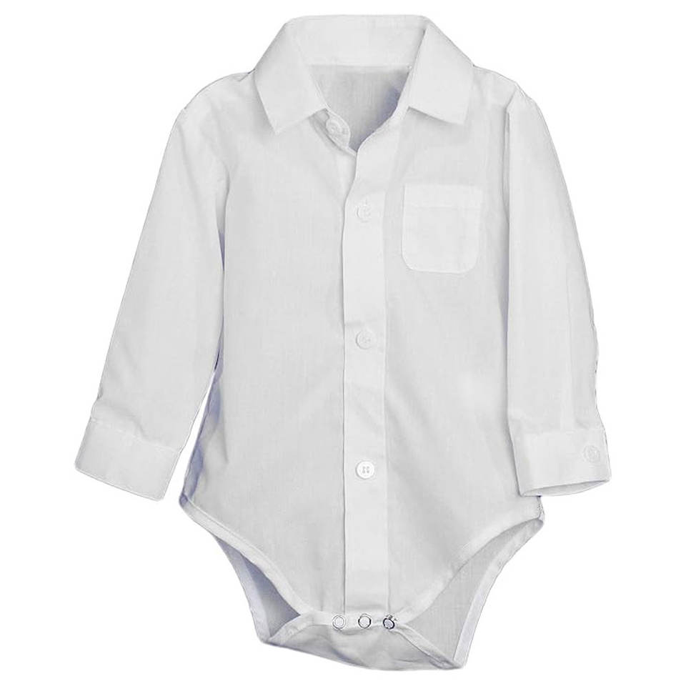 Baby Poly Cotton Button Up White Dress Shirt Bodysuit Romper With Collar Stylish White Long Sleeve Dress Shirt Bodysuit Romper