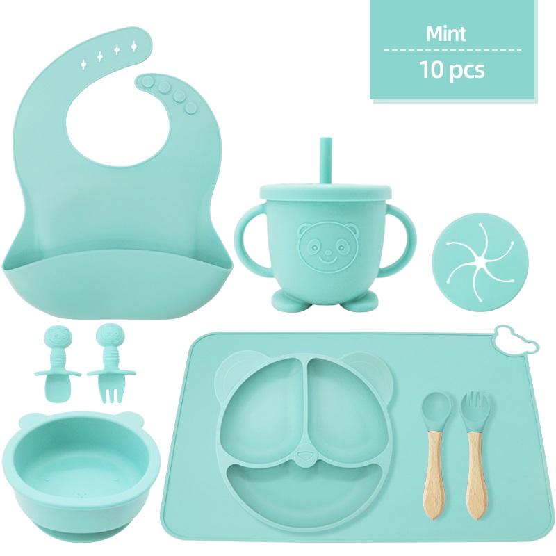 Baby Silicone Feeding Tableware Set with Suction Base Eco-Friendly & BPA Free Integrated Complementary Food Plate Placemat Bowl
