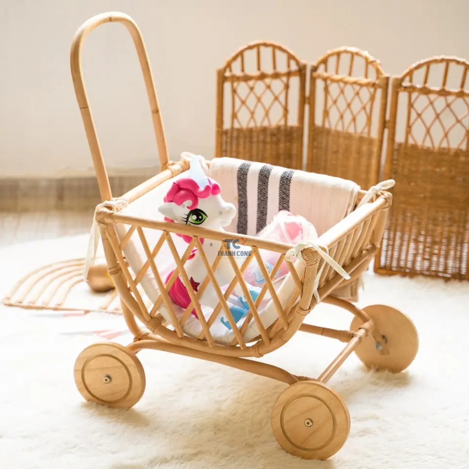 Baby Strollers Handmade Kids Doll Strollers Toy Baby Rattan Wagon Cart Kid Toys Prams for Dolls Wholesale Cheap Price