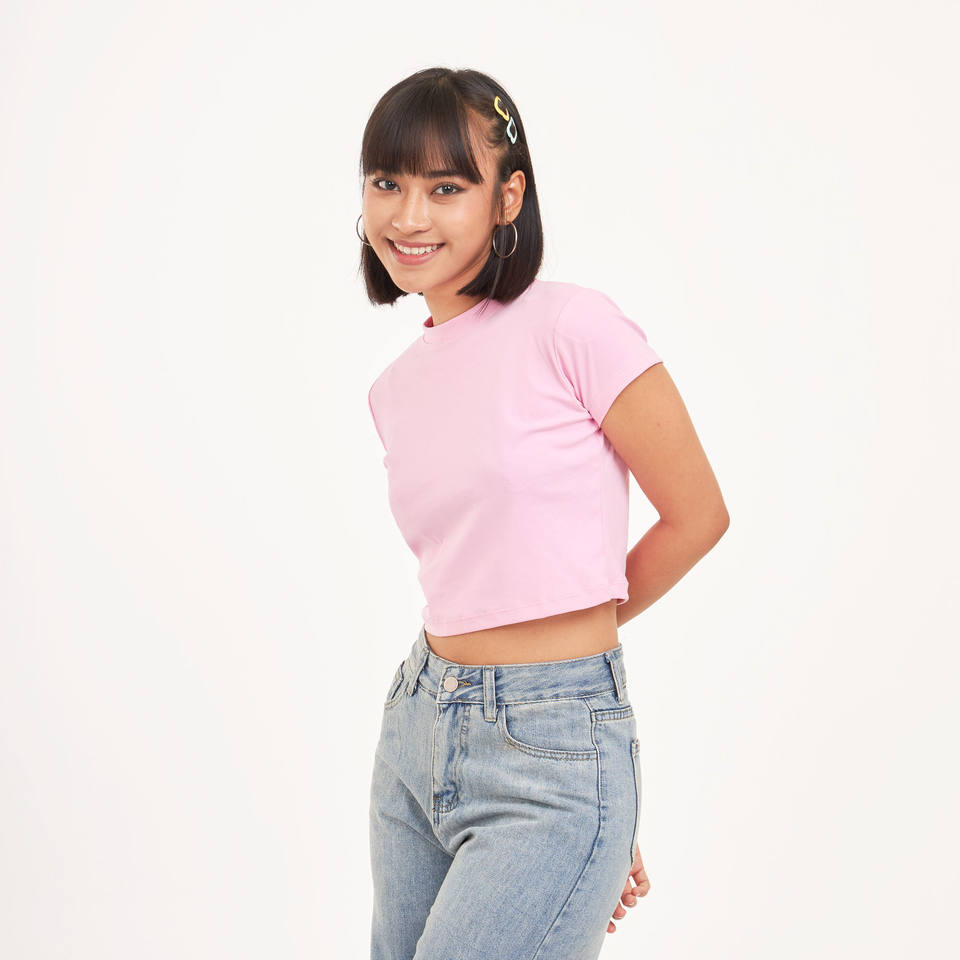Babytee Women's Casual Pink Cropped Tshirt Breathable Anti-Pilling Short Sleeve Top O-Neck Collar Optimal Comfort Eco-Friendly