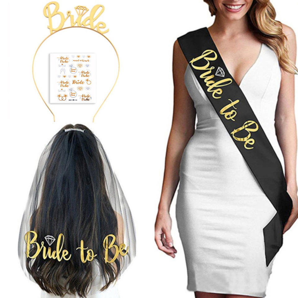 Bachelor Party Bride to Be Set Rose Gold Bridal Veil Headband Shoulder Strap Sticker Four-piece Set