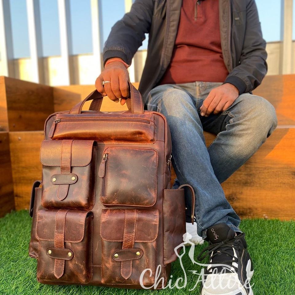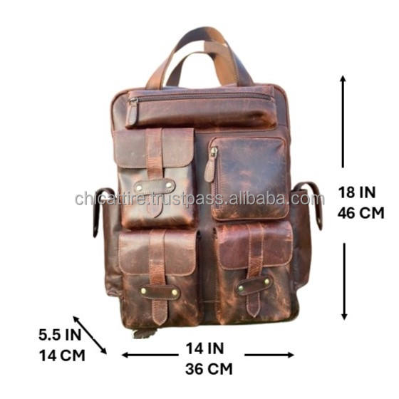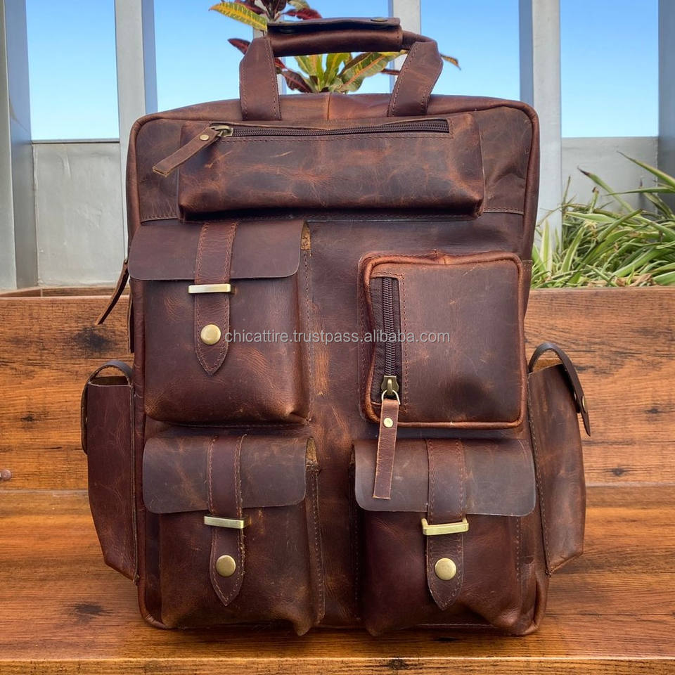 Back Pack Durable Casual Travel Genuine Leather Laptop Cowhide Leather Multiple Pockets Laptop Backpack