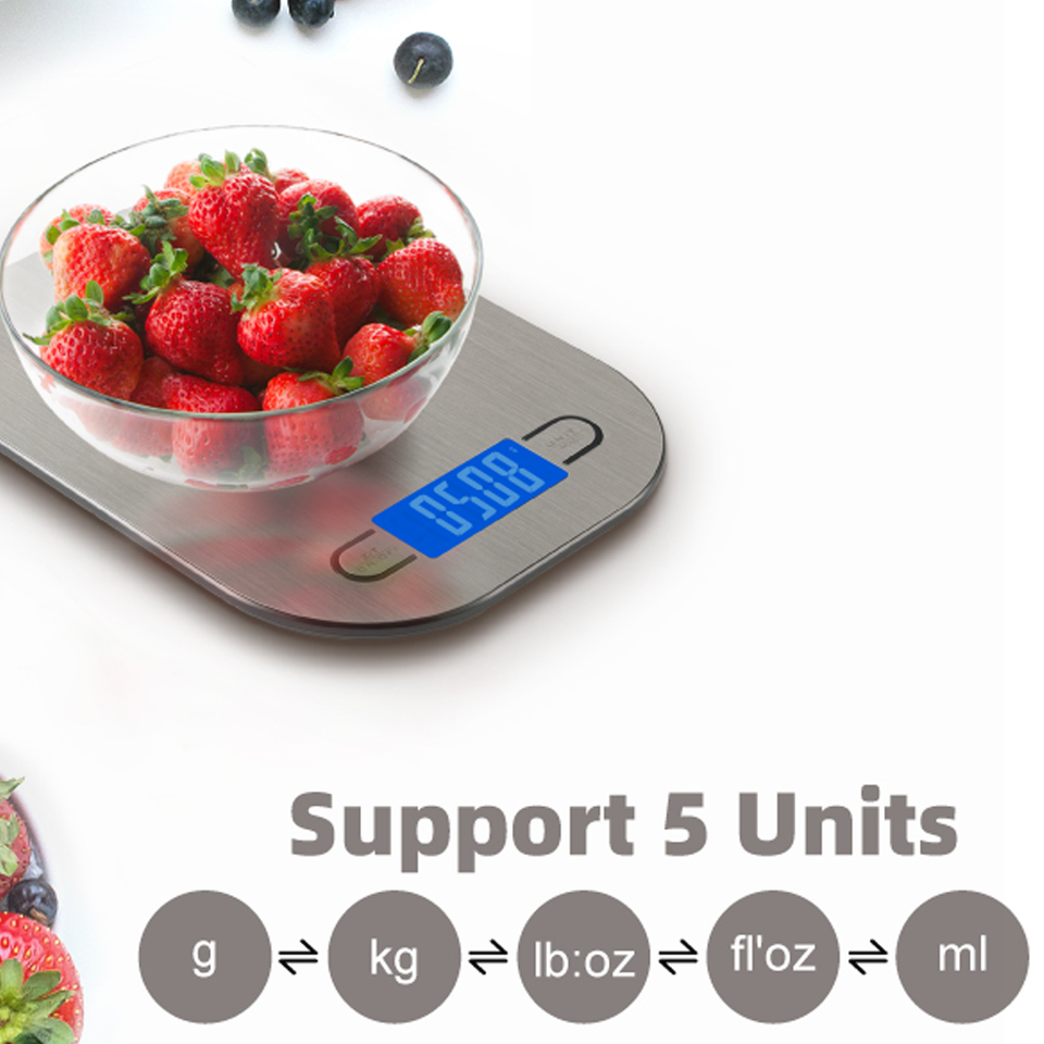Backlit LCD Digital Kitchen Scale Household Stainless Steel Electronic Weighing Balance Battery Powered Food Scale