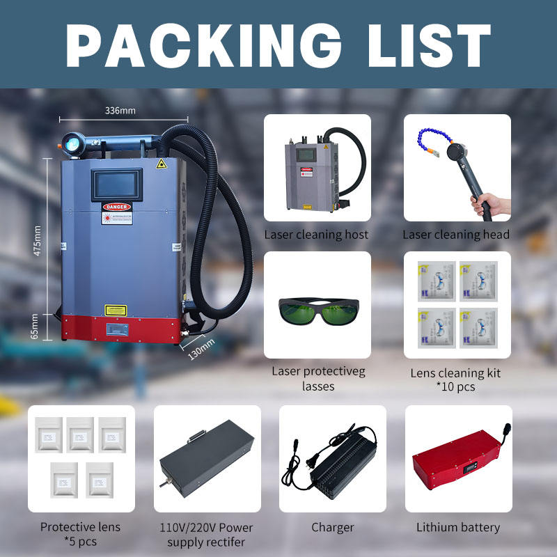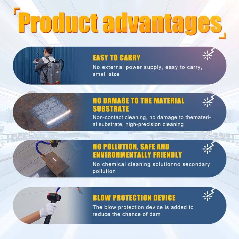 Backpack 50W/100W/200W Pulse Laser Metal Cleaner Rust Paint & Oil Removal Machine for Metal Mould Steel & Stone