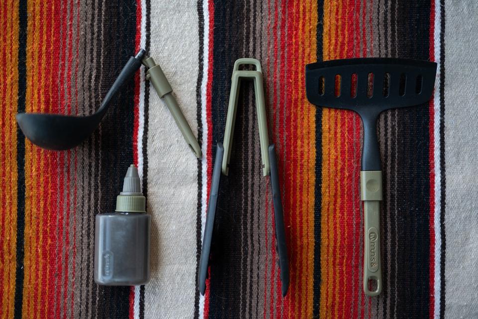 Contents:3x utensil, Oil bottlex1, 2x webbing bag