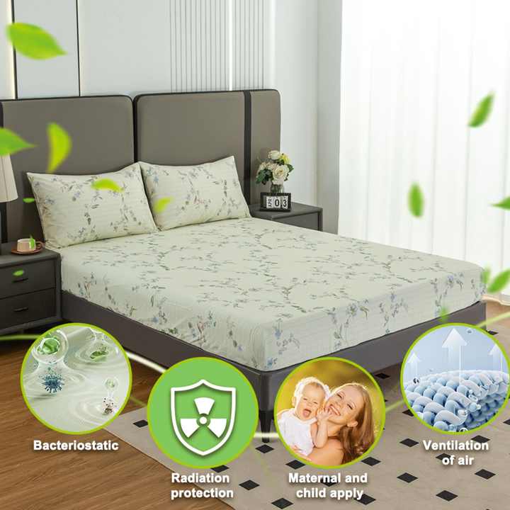 Bactericidal Anti-Static Embroidered 95% Cotton 5% Silver Fiber 400TC Eco-Friendly Grounding Fitted Sheet for Maternal Infant