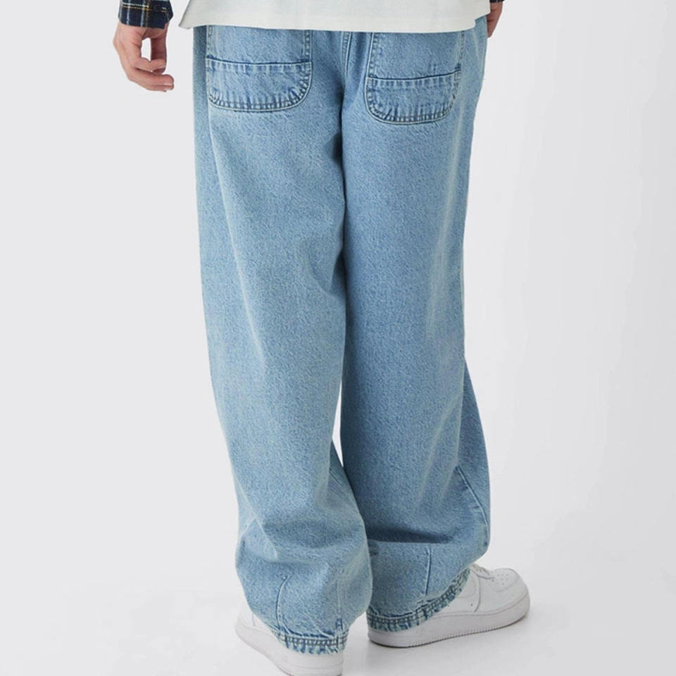 Baggy Fit Style 100% Cotton Pants Men's Denim Trousers Washed Wholesale Streetwear Plus Size Jeans Wide Leg Loose Jeans Pant