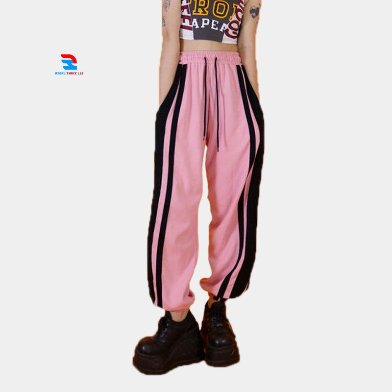 Baggy Outdoor Stripe Sweatpants Pajama Women's Breathable Cotton Fleece Waist Trouser Pajama Sweat Pants Ladies