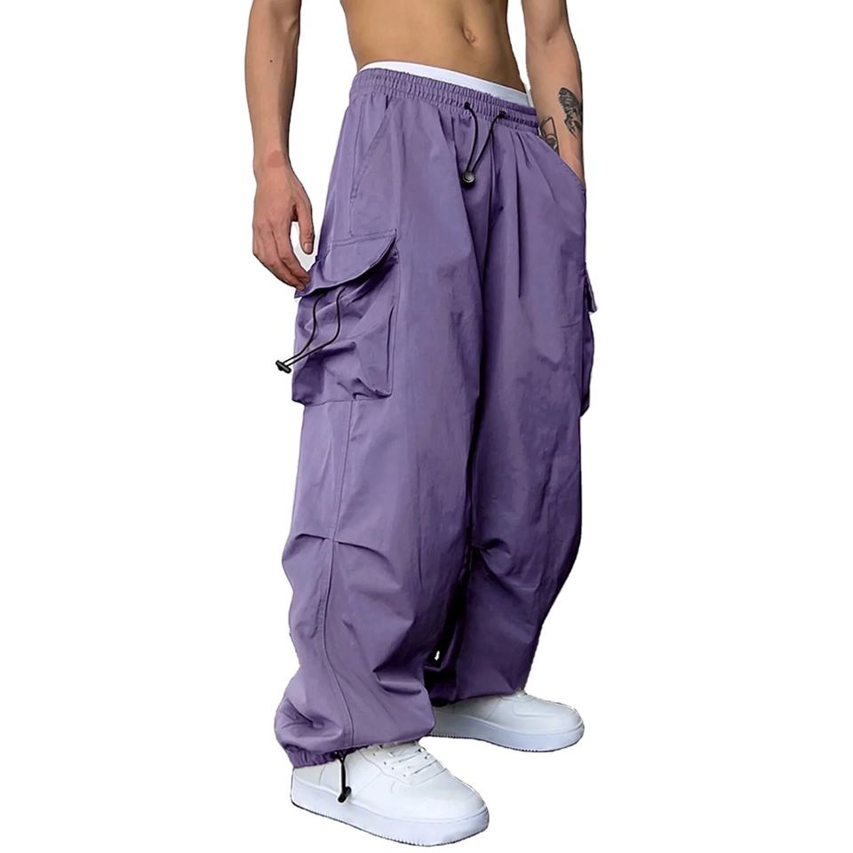 Baggy Party Wear Anti-wrinkle Man Trouser Plain Dyed Custom Black Drawstring Waist Nylon Pants Snap Button Side Zipper