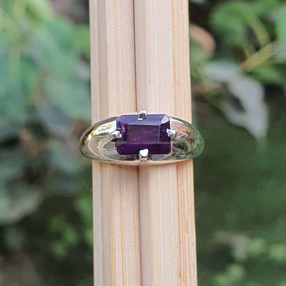 Product name:8x6mm Purple Amethyst CAD Ring in 925 Sterling Silver