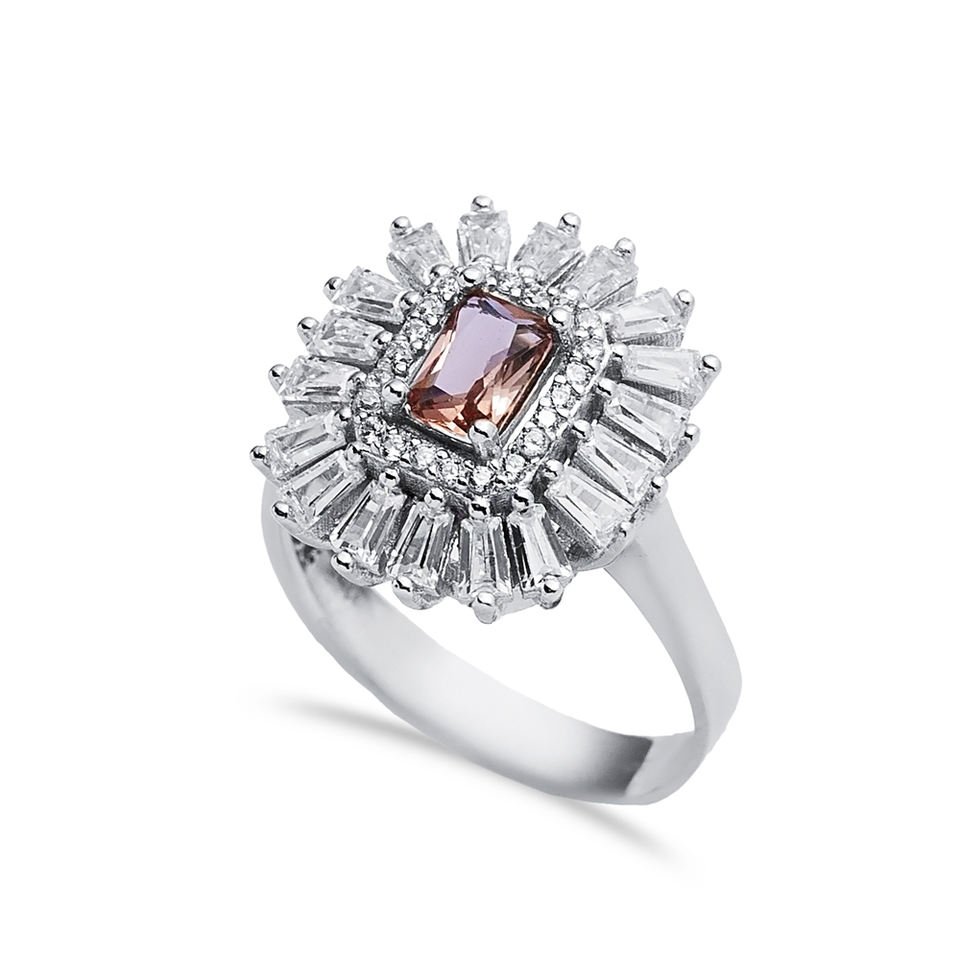 Baguette CZ Stone Rectangle Sultanite Stone Cluster Ring 925 Sterling Silver Ring Wholesale Turkish Jewelry