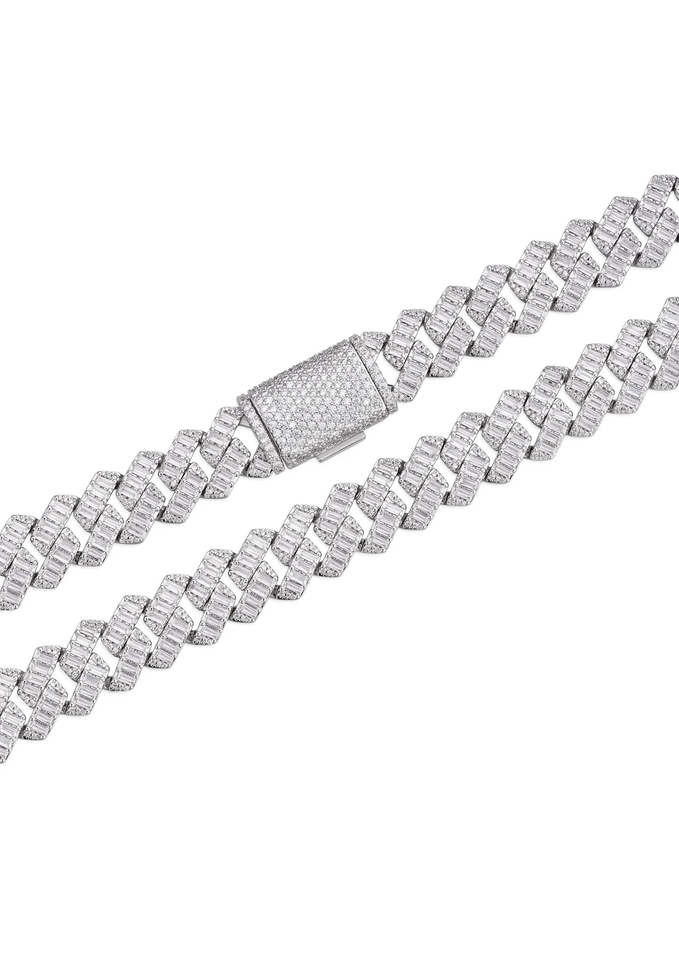 Baguette Cut Moissanite 20mm Cuban Chain Necklace in 925 Sterling Silver Luxury HipHop Style Rhodium & 14K Gold Plated