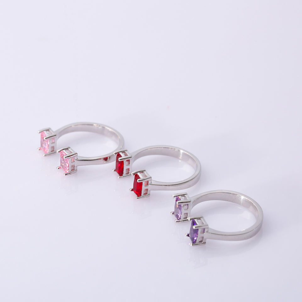 Baguette Design Garnet Zircon Stone Adjustable Ring Rhodium Plated Wedding Handmade 925 Sterling Silver Fine Jewellery