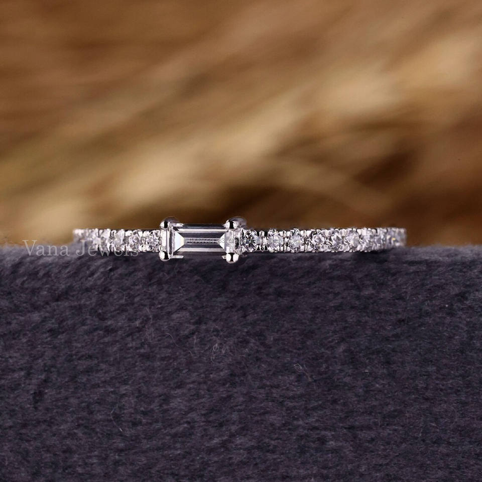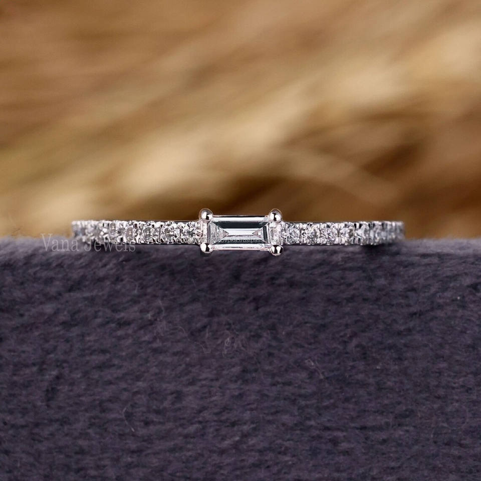 Baguette Diamond Wedding Band Dainty White Gold Eternity Ring Lab Grown Pave Set Dainty Promise Ring for Her IGI Parties