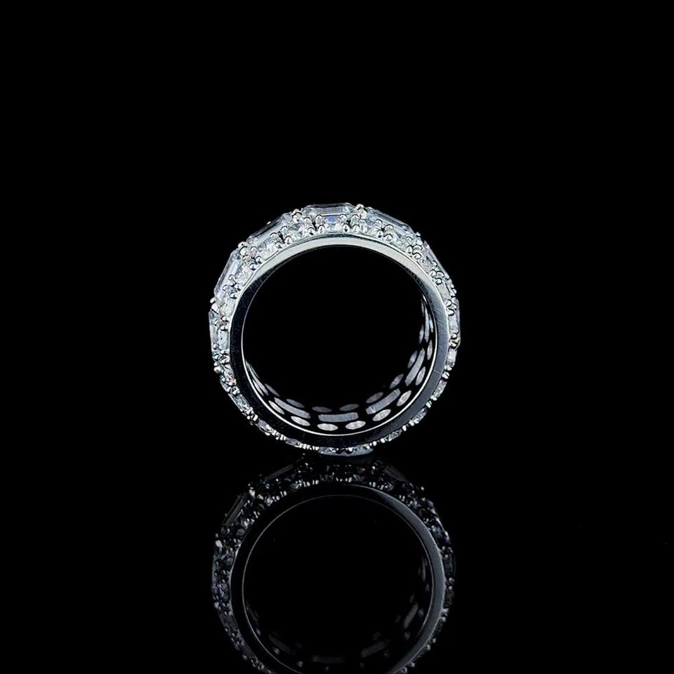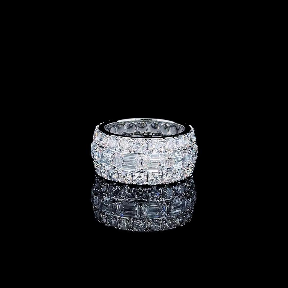 Baguette & Round Cut Moissanite Diamond Cluster Ring for Men 925 Sterling Silver Rhodium Plated Wedding Anniversary Gift for Him