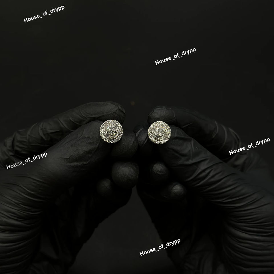 Baguette & Round Cut Moissanite Diamond Stud Earrings 925 Silver Iced Out Double Halo Set Hip Hop Unisex Party Wear Jewelry