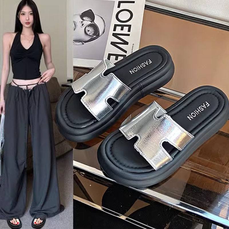 BaiHu Summer Autumn New Style Platform Open Toe Beach Wedge Flat Sandals Fashionable Trendy Thick Sole Rubber Outsole Design