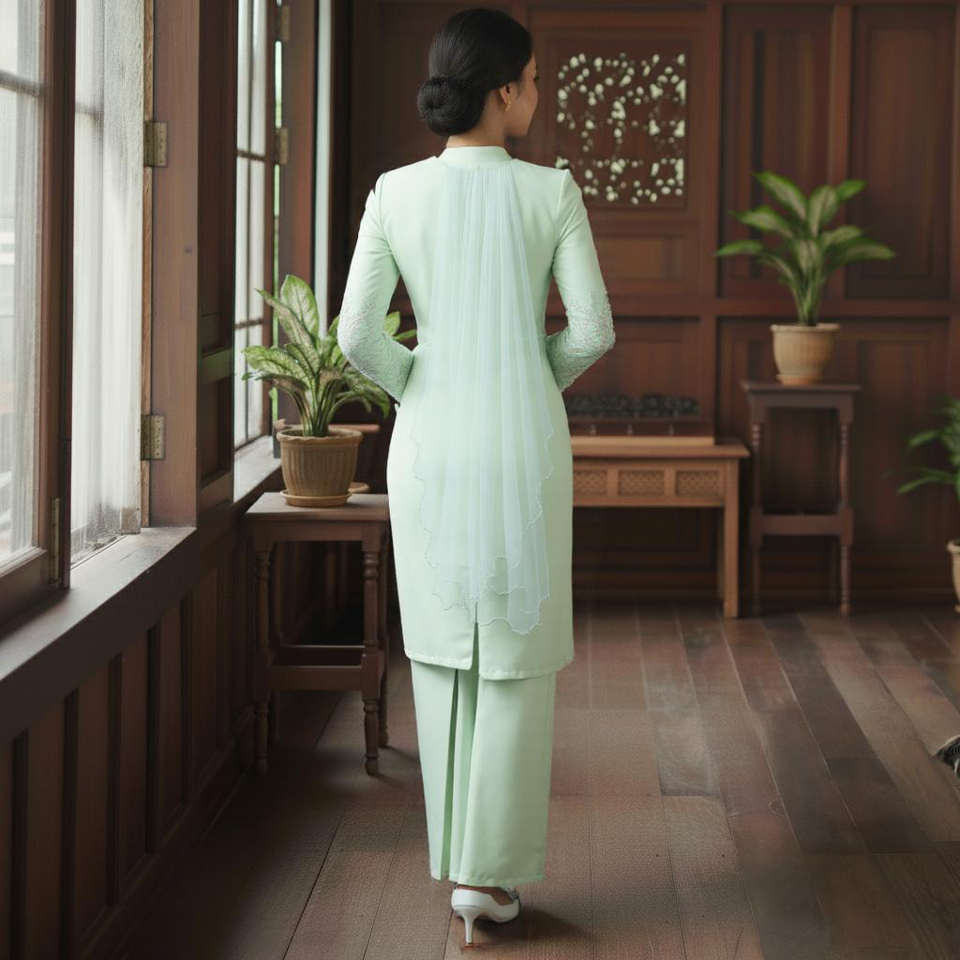 Baju KurungSulam Goyang Direct Kilang Moden Polyester Fiber Printed Set Ironless Cey Crepe Modest Eco-Friendly Geometric Pattern