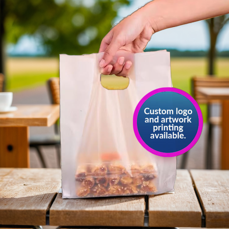 Bakery Takeout Bag Custom Frosted Plastic Handle Carrier with Logo Printed for Food Use