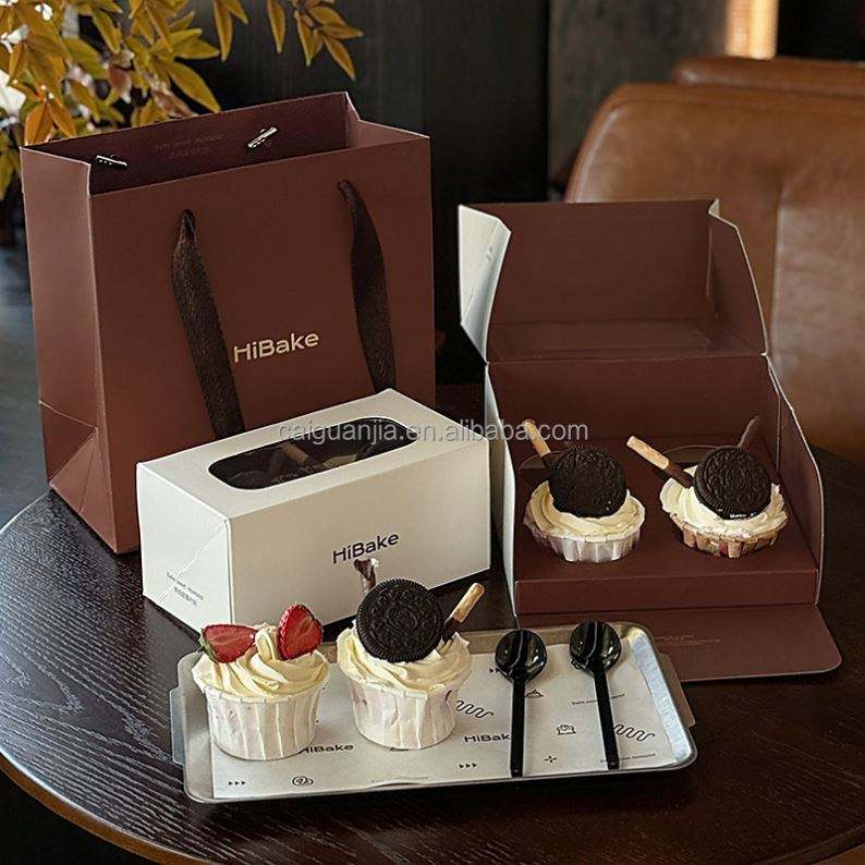 Baking Tote Bag Custom Kraft Paper Bag Cake Packaging Disposable Cold Drink Creative Food Set Restaurant Takeaway Paper Bag