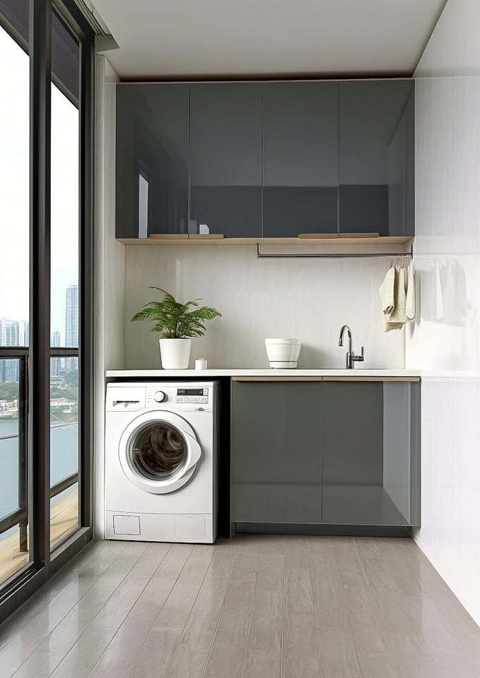 Balcony Cabinet with White Wash Balcony Custom Cabinet Washing Machine Laundry Vanity with Outdoor Balcony Cabinet