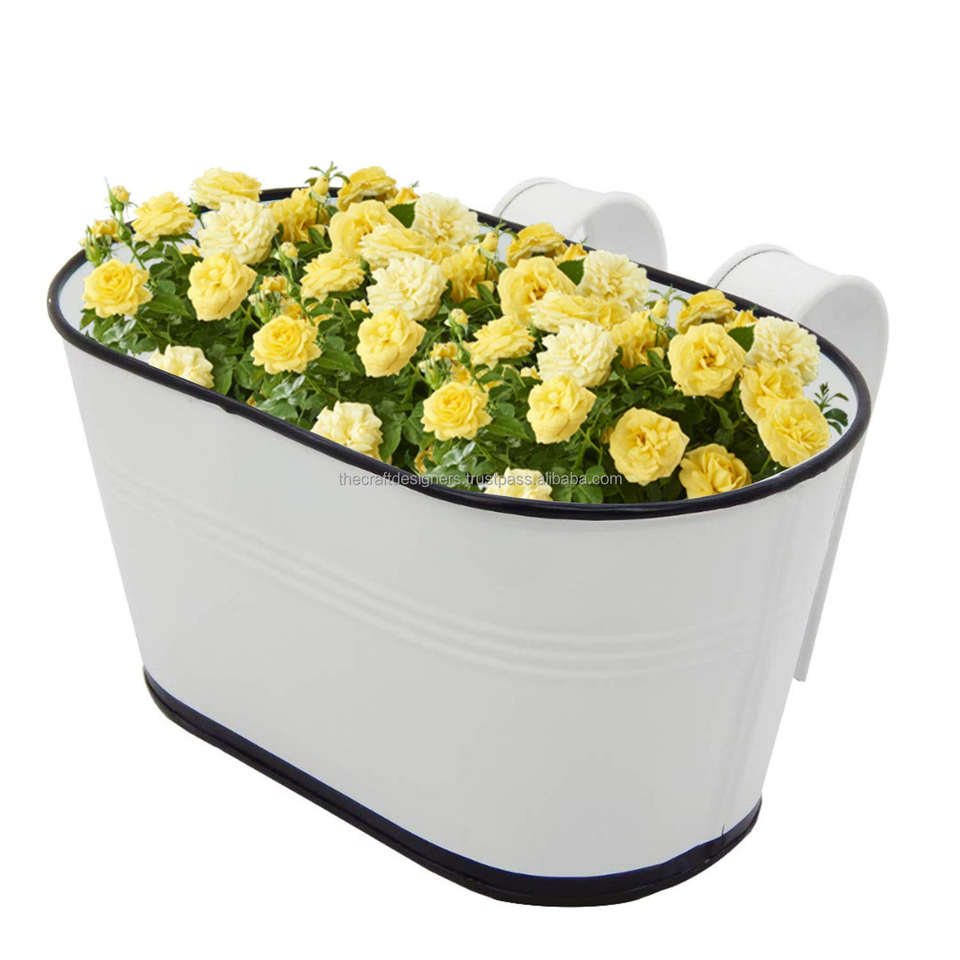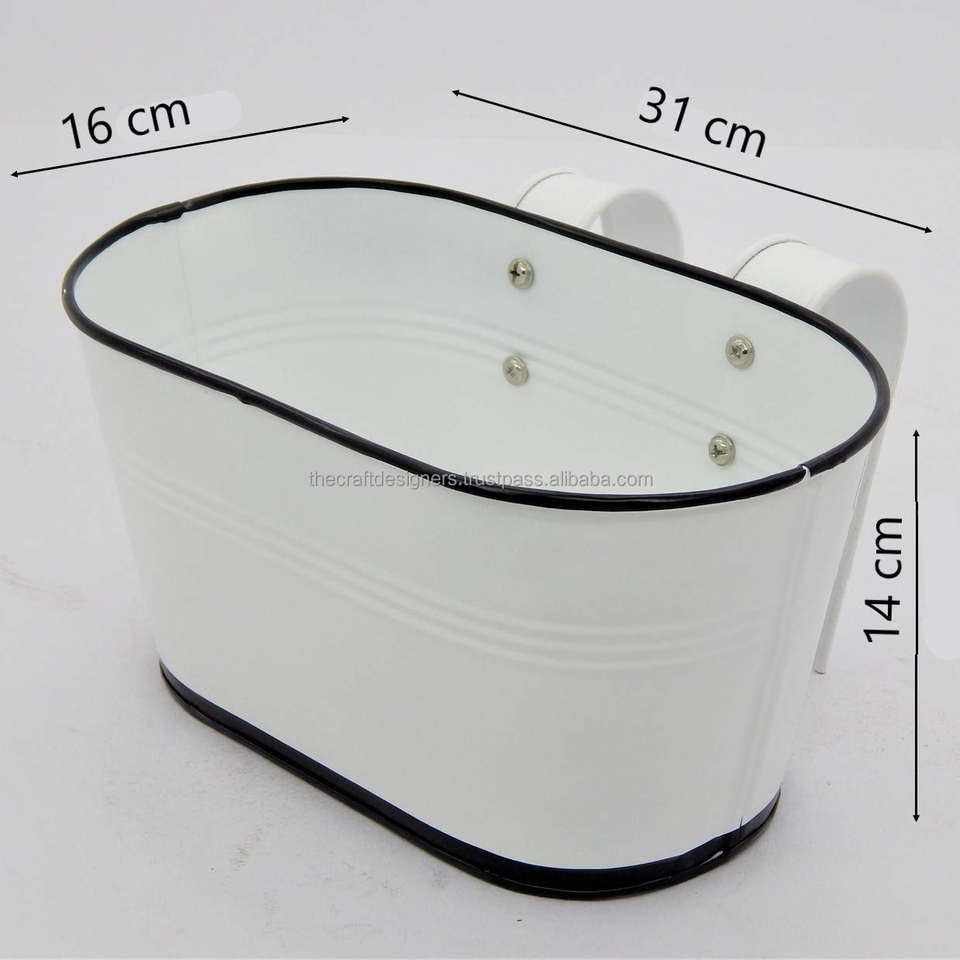 Balcony Hanging Planters Flower Bucket Galvanized Wall Hanging And Mounted Farmhouse Planters Flower Pot White Powder Coated