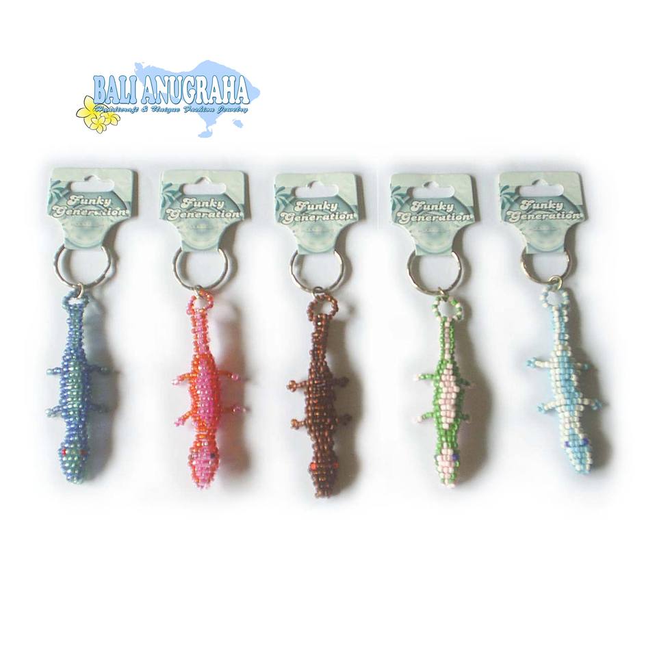 Bali Anugraha Assorted Colors Custom Size Gecko Glass Bead Key Chain-Gift