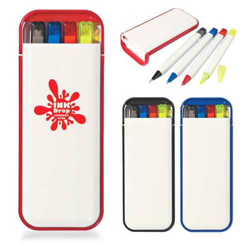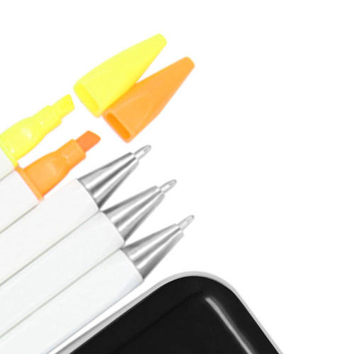 Feature:3 Ball Point Pens, 2 Highlighters, Plastic Pen Case