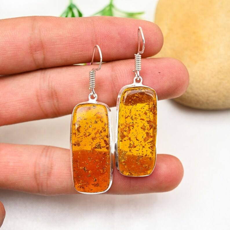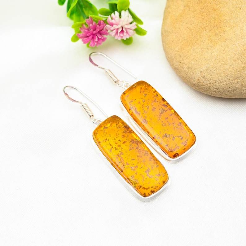 Keyword:Amber Stud Earrings With Sparkling Amber Stones